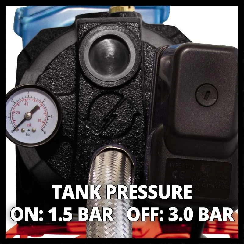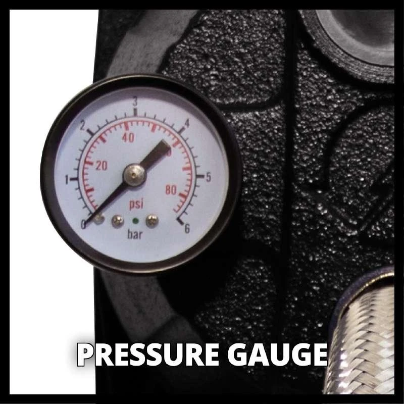 La pompe Einhell GC-WW 6036 est une pompe hydrophore puissante et pratique qui peut vous servir dans un large Ă©ventail d’activitĂ©s de pompage. Utilisez la pompe, par exemple, pour transporter de l’eau claire depuis des citernes, des puits et des puits. Vous pouvez ainsi fournir des systèmes d’arrosage, des chasses d’eau et des machines similaires. Pour offrir une grande capacitĂ© de dĂ©bit, cette unitĂ© de rĂ©servoir sous pression est Ă©quipĂ©e d’un puissant moteur de 600 W. Ce moteur offre un dĂ©bit allant jusqu’Ă 3 600 litres par heure, une hauteur d’aspiration allant jusqu’Ă 40 m, une hauteur d’aspiration allant jusqu’Ă 8 m et une pression de fonctionnement maximale de 4,0 bars. Il est recommandĂ© d’utiliser la pompe hydrophore avec de l’eau claire, dont la tempĂ©rature ne dĂ©passe pas 35° Celsius. Une longue durĂ©e de vie de la machine est assurĂ©e par un rĂ©servoir/rĂ©servoir de pression en acier d’une capacitĂ© de 20 L. La machine dispose d’un solide raccord d’aspiration et de pression sur le boĂ®tier de la pompe, auquel des tuyaux peuvent ĂŞtre raccordĂ©s sans problème. Le raccord d’aspiration convient aux tuyaux d’un diamètre de 33,3 mm (filetage femelle de 1 pouce) et le raccord de pression aux tuyaux d’un diamètre de 33,3 mm (filetage femelle de 1 pouce). Elle dispose d’un pressostat intĂ©grĂ© qui active la pompe lorsque la pression devient trop faible et l’arrĂŞte lorsque la pression redevient suffisante. Vous disposez ainsi de rĂ©serves suffisantes pour utiliser l’unitĂ© de rĂ©servoir sous pression pendant une longue pĂ©riode. Après l’utilisation de la machine, le condensat créé dans le rĂ©servoir peut ĂŞtre retirĂ© de la machine grâce Ă un bouchon de vidange d’eau. Le rĂ©servoir peut ĂŞtre rempli avant utilisation grâce Ă un bouchon de remplissage d’eau facilement accessible. Pendant le fonctionnement, vous pouvez surveiller la pression de fonctionnement grâce au manomètre intĂ©grĂ© Ă la pompe hydrophore. La pression est ensuite rĂ©glable par le biais du pressostat de la pompe hydrophore.