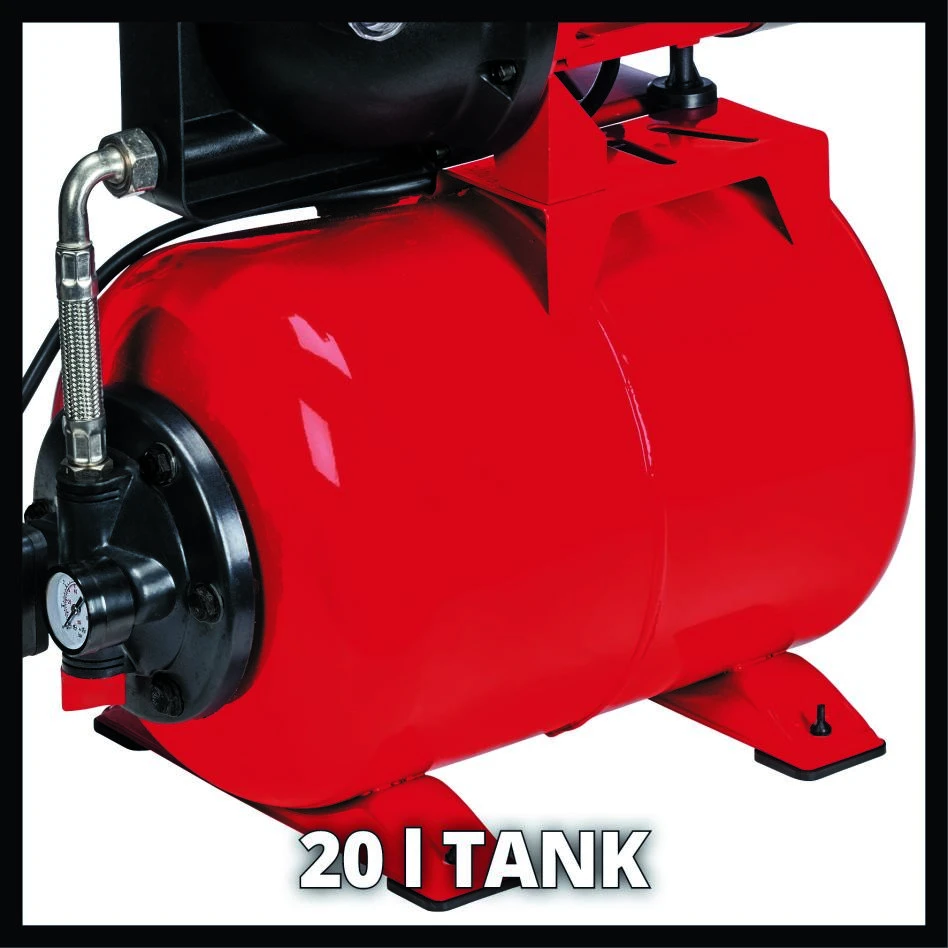 De GC-WW 8042 ECO Pompe hydrophore van Einhell is een economisch en ecologisch verantwoord alternatief voor het gebruik van duur leidingwater en helpt geld te besparen. Dankzij de Einhell ECO Power technologie levert de huishoudelijke waterleiding een hogere opbrengst met minder elektriciteit op hetzelfde moment, waardoor het een efficiënte oplossing is voor het verpompen van schoon water uit reservoirs, schachten, putten of stortbakken voor gebruik in huis en in de tuin. Voor het doorspoelen van toiletten, het water geven van groentetuinen, bloemen en struiken in de tuin of voor gazon sprinklers, voor het reinigen van de vloer of de auto maakt de hydrofoorpomp het mogelijk een permanente toevoer van onderhoudswater ter beschikking te hebben met constante druk. De hydrofoorpomp GC-WW 8042 ECO heeft een vermogen van 800 W om tot 4.200 liter per uur te leveren. Met een manometer kunt u de huidige druk in één oogopslag bekijken. Met een grote watervulopening en een indicator voor het vullen van water, kunt u in één oogopslag zien of er al genoeg water in de pomp is gevuld. Een opvouwbare handgreep maakt het mogelijk dat de hydrofoorpomp makkelijk kan worden vervoerd naar de plaats waar deze moet worden gebruikt en ook worden opgeslagen in een minimale ruimte. De hydrofoorpomp heeft een tank met een inhoud van 20 liter en de waterafvoerschroef zorgt voor vorstbescherming om gemakkelijk achtergebleven water af te voeren zodat de pomp droog kan worden opgeborgen tijdens de winter. De thermische beveiliging beschermt de pomp tegen overbelastingsschade door oververhitting. De hydrofoorpomp is voorzien van hoogwaardige mechanische afdichtingen, een zuigaansluiting 42 mm / 1¼ » buitendraad en een drukaansluiting 33,3 mm / 1″ binnendraad. De lengte van het netsnoer is 1,5 m.