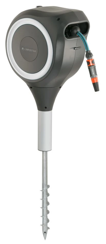 - Le bac à tuyau RollUp S est livré avec un tuyau de qualité de 15 mètres de long, tous les éléments de raccordement et du système Original GARDENA nécessaires, une buse de pulvérisation avec deux vitesses de pulvérisation différentes et des accessoires de montage.