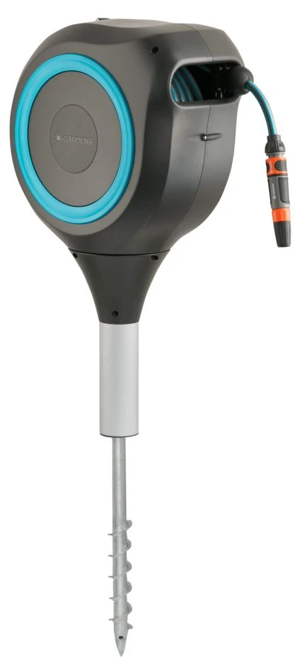 - De plus, cette boîte à tuyau vous évite d’enrouler et de rembobiner le tuyau et de vous salir les mains : en tirant brièvement sur l’extrémité du tuyau, le verrouillage se libère et le tuyau d’arrosage s’enroule de manière entièrement automatique et fiable grâce à un ressort en acier intégré.