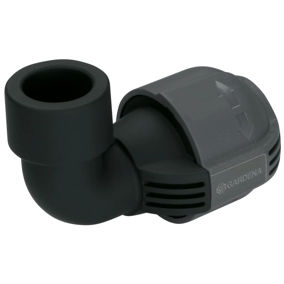 - Dans le cadre du système d’arrosage GARDENA, le raccord en L GARDENA 25 mm x 3/4″ filetage femelle peut être inséré à l’extrémité du tuyau.