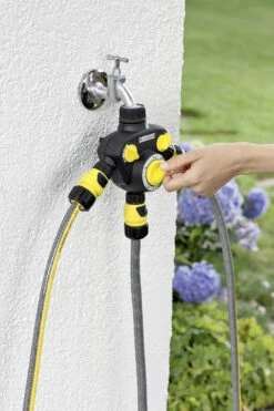 - L’arroseur peut être facilement connecté au tuyau d’arrosage et est compatible avec tous les systèmes de clic disponibles