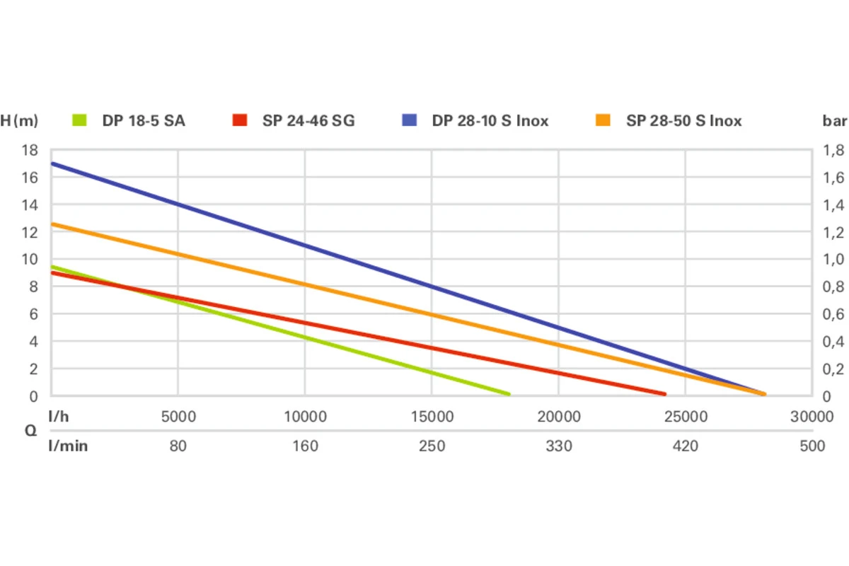 - Capacité maximale de la pompe : 28000 l/h